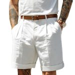 Upgrade your summer wardrobe with these Men’s Casual Solid Color Beach Shorts, an essential piece for creating easygoing and stylish warm-weather looks. Please note that the belt is not included, allowing you to personalize your ensemble to suit your unique style.